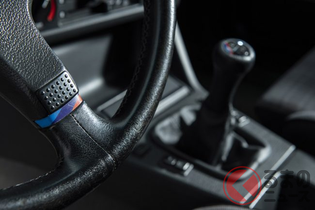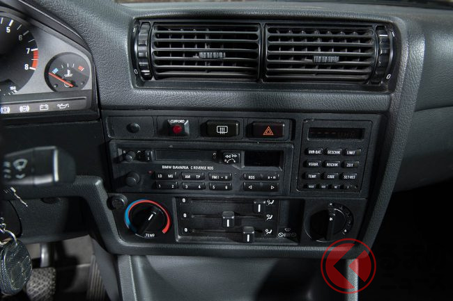 一方のM3は、人気が高いレーシングパターンのトランスミッションを装備した個体だ。レーシングパターンとは、通常左上に1速、左下に2速、中間上が3速となっているシフトパターンとは違い、左下に1速、中間上が2速で中間下が3速となっているもの。サーキットではほとんど1速を使うことはなく、ヘアピンコーナーでも2速しか使わないため、こちらのほうが2速から3速へのシフトに要する時間が短くなり、またシフトミスも起こりにくいということもあって、スポーツ走行をするしないにかかわらずBMWフリークの間では人気がある。