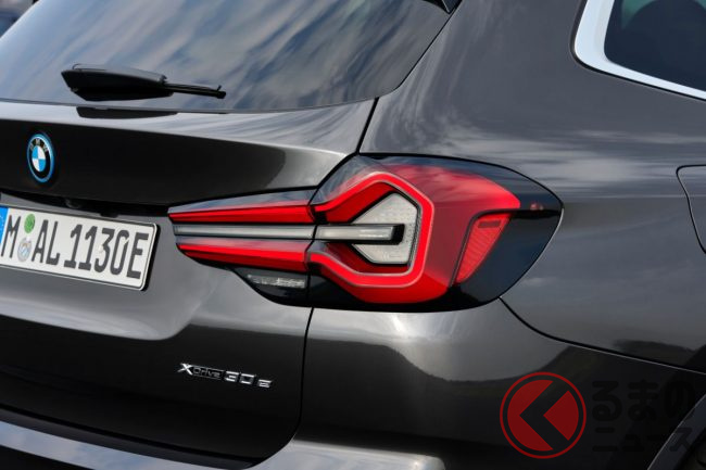 さらにプラグインハイブリッド(PHEV)モデル「X3 xDrive30e」には、フロントウイングに「Electrified by i」のエンブレムが入り、すべてのBMWロゴには追加の青いリングが備わる。