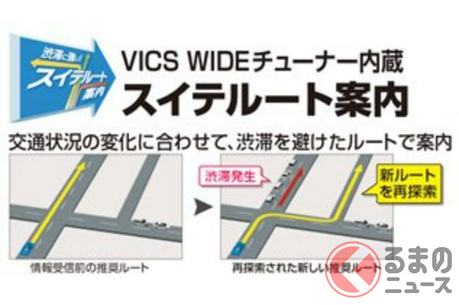また、G1500VDではプローブ情報の活用が進む道路交通情報サービス「VICS WIDE」に対応した「スイテルート案内」機能で渋滞を回避して案内します。