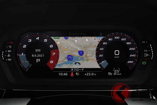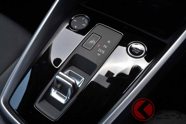 10インチを超える大画面がふたつ並び、その横に配された尖ったダッシュも目を引く。センターコンソール側を見ると、コンパクトになったシフトスイッチがあり、アウディの定番だったMMIのコントローラーが廃されていることがわかる。もはやタッチパネルで操作したほうがよいという判断がなされたようだ。