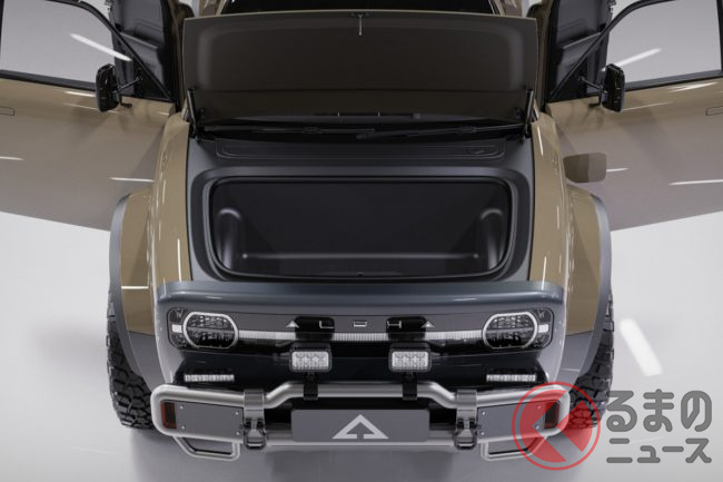 ゴツさを強調するカンガルーバンパーが印象的なほか、逆スラントノーズ調なデザイン、スクエアなフロントフェイスなど、レトロ感も感じさせる外観が特徴です。