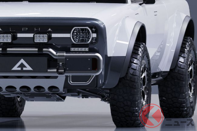 今回発表されたコラボ仕様のベース車となった「ウルフプラス」はアルファの4人乗りEVピックアップトラックで、ボディサイズは全長5150mm×全幅1980mm×全高1760mm。