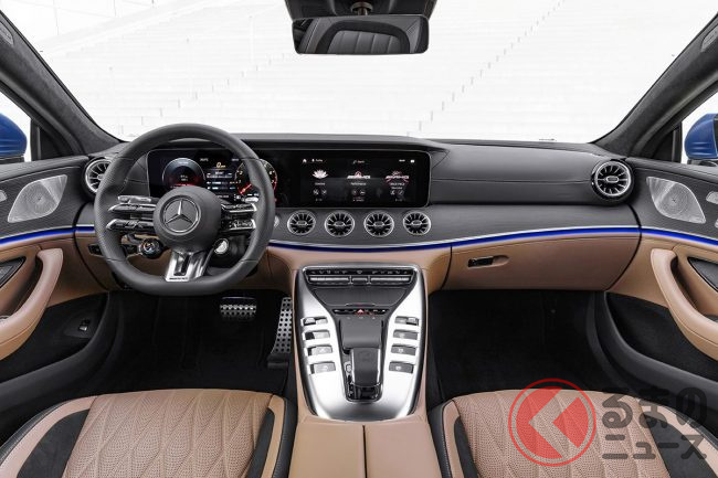 全長5054mm×全幅1953mm×全高1447mm、ホイールベース2951mmのEセグメントモデルで、日本では639ps・900Nmを発生する4リッターV型8気筒ツインターボエンジン搭載のトップグレード「GT63 S 4MATIC+」を筆頭に、420ps・520Nmを発生する3リッター直列6気筒ツインターボエンジンに16kW・250Nmを発生するISGを組み合わせた「AMG GT 53 4MATIC+」および367ps・500Nmの3リッター直列6気筒エンジンに同ISGを組み合わせる「AMG GT 43 4MATIC+」という3グレードでの展開になる。