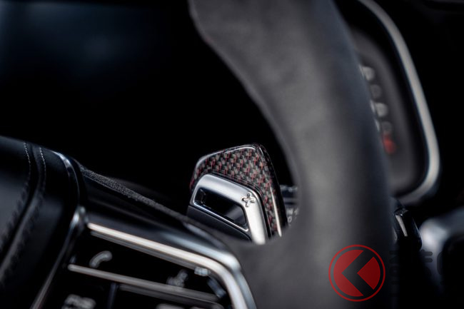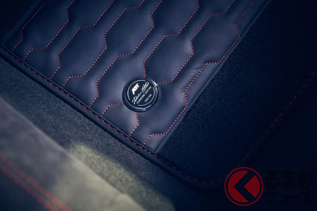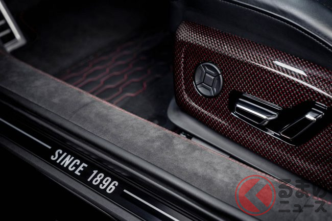 インテリアはさらにコレクターズアイテムとして魅力的な仕上がりだ。前述した精巧に作られたマットブラックアルマイト製のタイムカプセルはもとより、手縫いのスポーツシート、「Since 1896」のレタリングが施されたドアシル、新色のシグネチャー・カーボンレッドのスタイリングなど、特別感が漂っている。