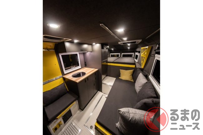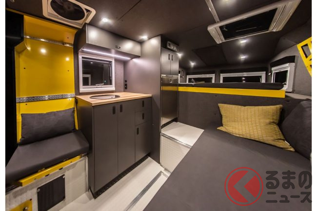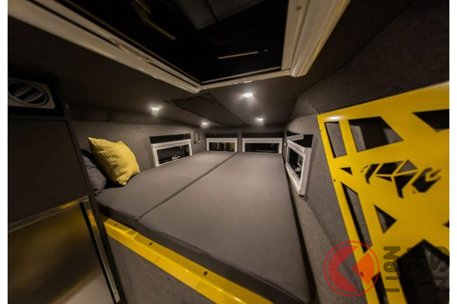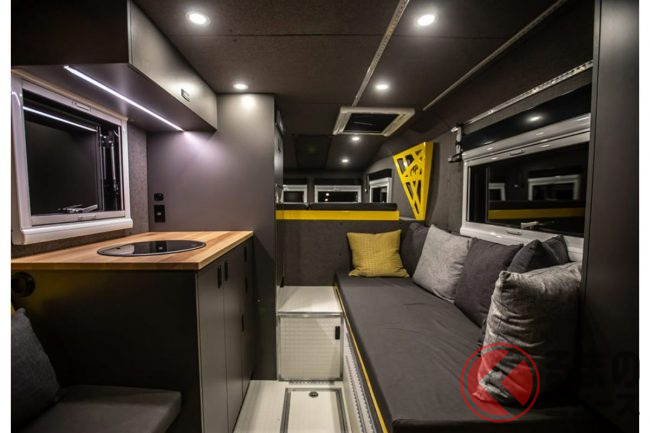 ルーフにはソーラーパネルが備えられ、600ahの容量があるバッテリーから2000wの電力を使用可能で、ウインドウも、耐熱性と断熱性に優れた強化ガラスが設定されています。