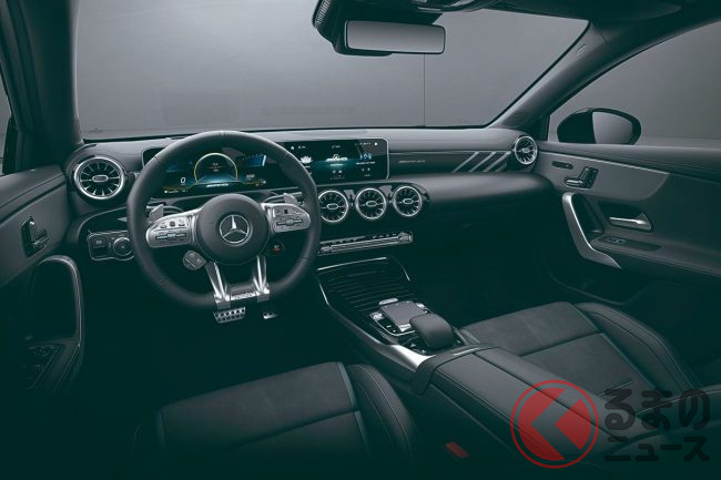黒基調のインテリアには、いかにもホールド性の良さそうなスポーツシートを採用するほか、一方で12.3インチのバーチャルコックピットプラスを標準装備するなど、時代に即したアップデートが図られている。