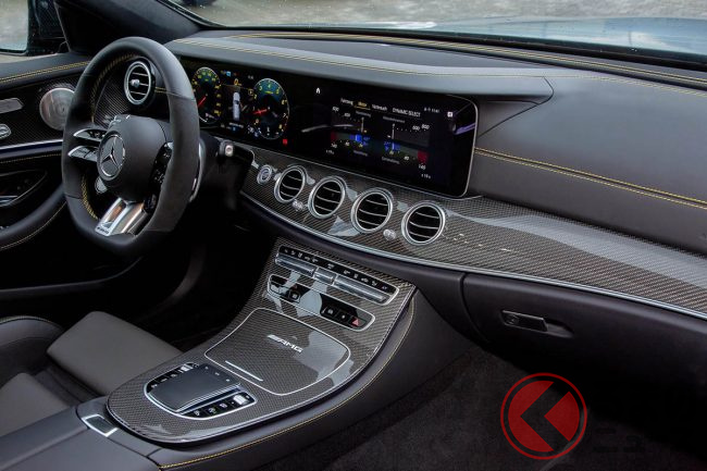 一方、エクステリアのフィニッシュは控えめな印象。ベースであるメルセデスAMGから大きく雰囲気は変わっていない。だからこそアウトバーンで遭遇した際に、ただのEクラスワゴンだと侮ってしまいそうになるのだ。