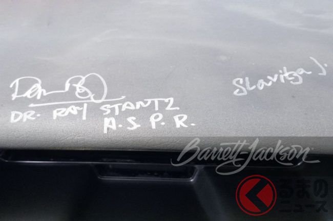 シートとインテリアはすべてオリジナルで制作され、ダッシュボードには8人のキャストとスタッフのサインが入っています。