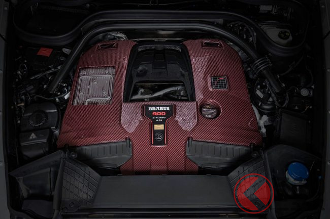 フロントに搭載されるエンジンは、排気量をノーマルの4リッターから4.5リッターへと拡大。900psの最高出力と1250Nmの最大トルクにアップされた。