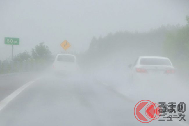 雨が多く降る時に考えられるのは、タイヤと路面との間に水膜ができる「ハイドロプレーニング現象」で、この状態ではクルマを正常にコントロールすることが難しくなります。