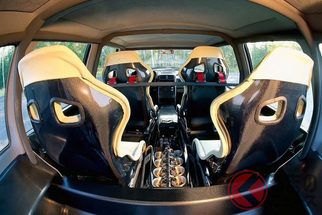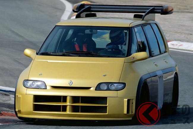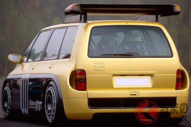 外観はエスパスのイメージを残しつつもボディサイドを大きく拡大し、ルーフ後部には巨大なウイングを装着。室内には4つのバケットシートが設置されてミニバンのイメージでつくられていましたが、エスパスの部品はごく一部で、むしろF1のシャシにエスパスに似た形状のボディをかぶせたようなものでした。