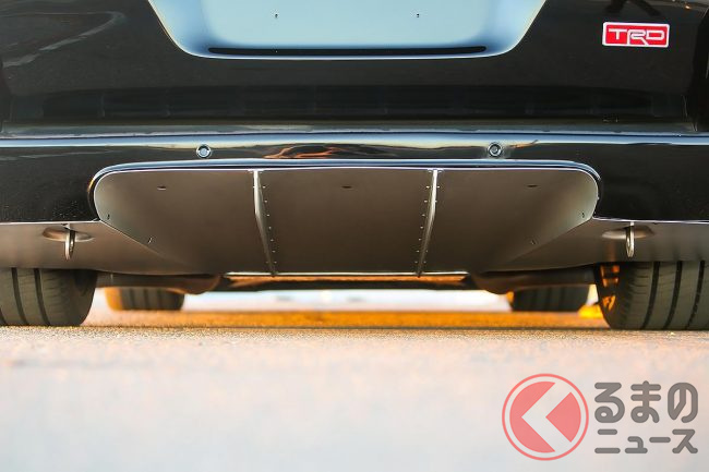 一方、車体の底面はフラット化されリアにディフューザーを装着することで、ダウンフォースを発生させています。