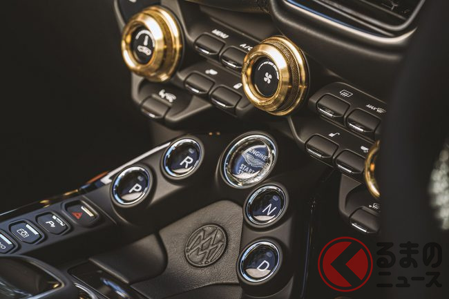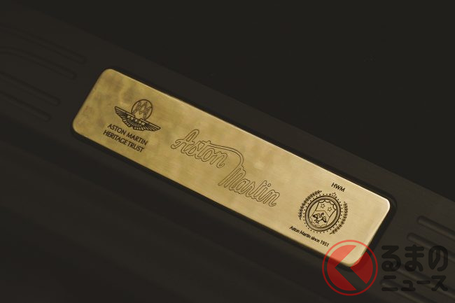 ほかにもA3のインテリアの特徴となっていた真鍮からヒントを得たアイテムとしては、特別仕様のロータリー・スイッチも採用されている。これらは、特別に真鍮から鋳造することで、当時の雰囲気を演出することに成功している。また、センターコンソールには、エンボス加工されたヘリテージのアストンマーティン・ロゴが装着されている。