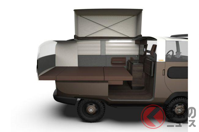 これを組み合わせることで、さまざまなボディタイプに変化させることができかつ、交換も迅速にできるため、仕事の際はトラック、プライベートではミニバン、キャンプに行くときはキャンピングカー仕様といったように変化させることができます。