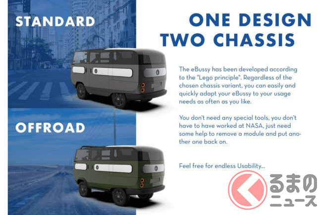 ドイツの新興EVメーカー「エレクトリックブランズ」が発売予定の新型「eBussy」は、あらゆるものがユニット化されており、ボディタイプや航続距離、ハンドル位置まで変えられる変幻自在のクルマです。
