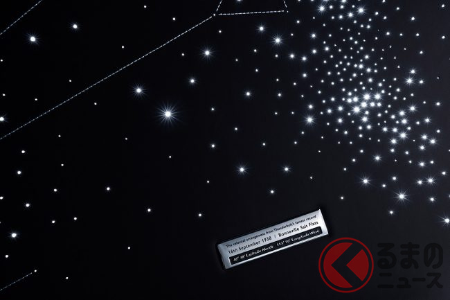 また、固定ルーフを持つレイスの天井には、エイストン大尉が3度目にして最後となる陸上スピード記録を記録した日、1938年9月16日の夜空を、光ファイバーで正確に描写した「スターライトヘッドライナー」も装備される。