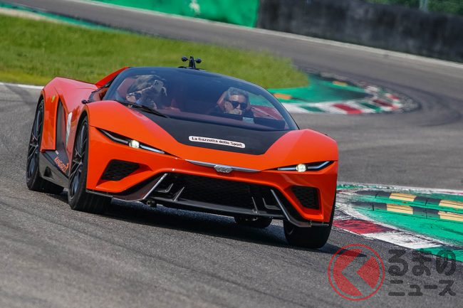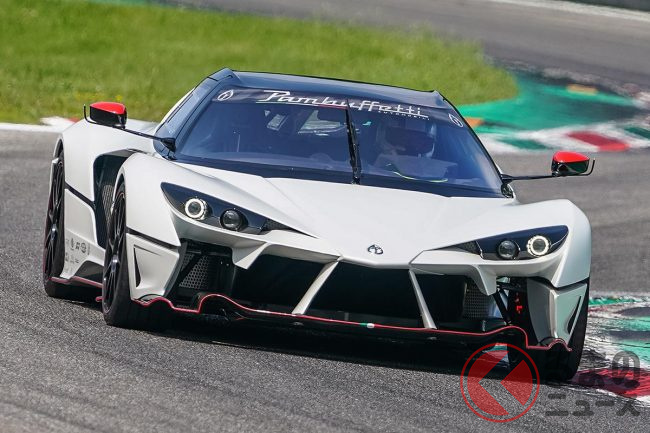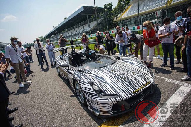 マルコ・アピチェッラがハンドルを握ったこのクルマは車重890kg、最高速時のダウンフォースは1.25トン以上、コーナーリングGが2.7G以上というサーキット走行のために作られたクルマだ(詳細に関しては9月の発表以降ということ)。