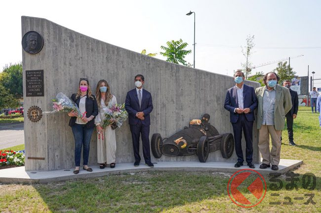 Alberto Ascari(アルベルト アスカリ)はミラノ出身のドライバーだ。1952年、1953年とフェラーリでF1チャンピオンとなったF1界のレジェンドで、その他数々の記録を残している。そうしたこともあり、セレモニーでは、イタリア人としてモータースポーツ界の発展に貢献した彼の偉業を称え、ミラノ市長からの言葉も添えられた。
