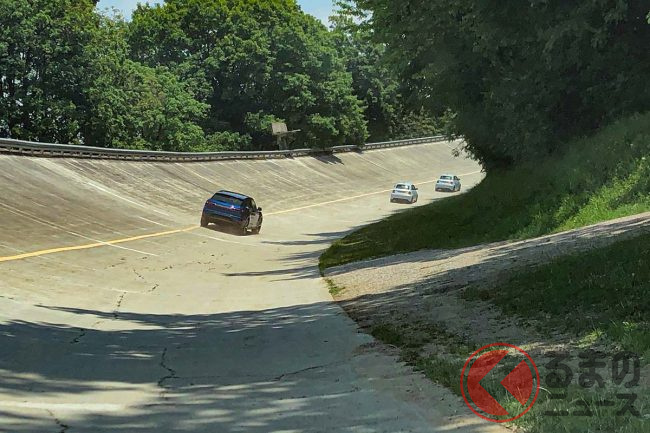 モンツァサーキットは2022年の100周年記念のために、今では使用されなくなっていたバンクを含めたサーキット全体の改修を現在おこなっている。そしてその日は待ちに待ったバンクでの走行もおこなわれた。目の前の少し恐怖も感じる急斜面、もちろん私たちが運転するクルマでは上部の方は走行禁止で下部のみの走だ。それでも前方を走るクルマを見るとバンクの存在感に圧倒される。