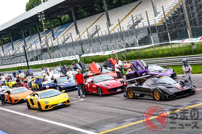 ミラノからモンツァまでスーパーカーがパレード