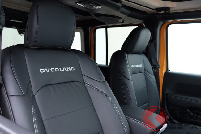 インテリアは、Overlandの刺繍入りブラックレザーシートと、Mopar製ハードトップヘッドライナーが特別装備される。Mopar製ハードトップヘッドライナーは、インテリアの質感を高めるだけでなく、夏場は断熱効果、冬場は保温効果が得られ、快適性向上にも寄与する機能パーツである。