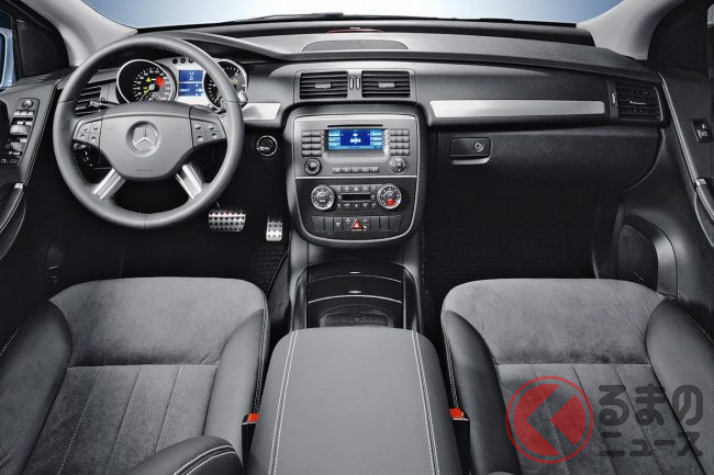 Rクラスは3列シートのステーションワゴンタイプのモデルで、ロングホイールベースとショートホイールベースを設定し、日本ではショートホイールベースを展開。日本仕様のボディサイズは全長4930mm×全幅1920mm×全高1660mmと当時のSクラスに匹敵する大柄なボディで、現在の「Bクラス」を巨大にしたようなイメージです。