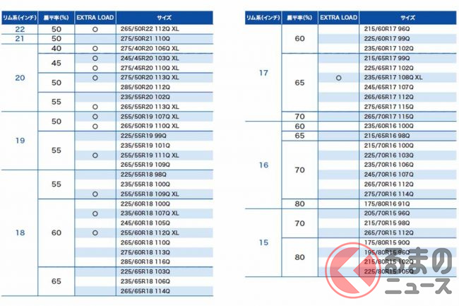 従来品ウインターマックスSJ8からさらに16サイズ追加した全54サイズと幅広いラインナップでの展開となります。265/55R20 113Qのみ2021年9月発売予定で、ほかサイズは同年8月に発売されます。また従来のSJ8は併売されず、順次新ウインターマックスSJ8+に切り替わっていきます。