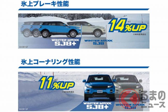 氷上ブレーキ性能14%アップ! SUV用スタッドレス ダンロップ「ウインターマックスSJ8+」登場