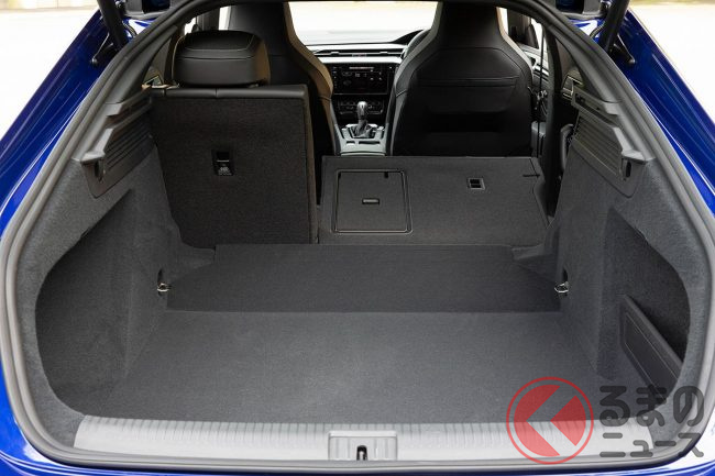 荷室容量は通常時でアルテオンが563リッター、アルテオン・シューティングブレークは565リッター、リアシートを倒した最大荷室容量はアルテオンが1557リッター、アルテオン・シューティングブレークは1632リッターとなります。積載エリアの最大長は両バージョンとも2092mmです。