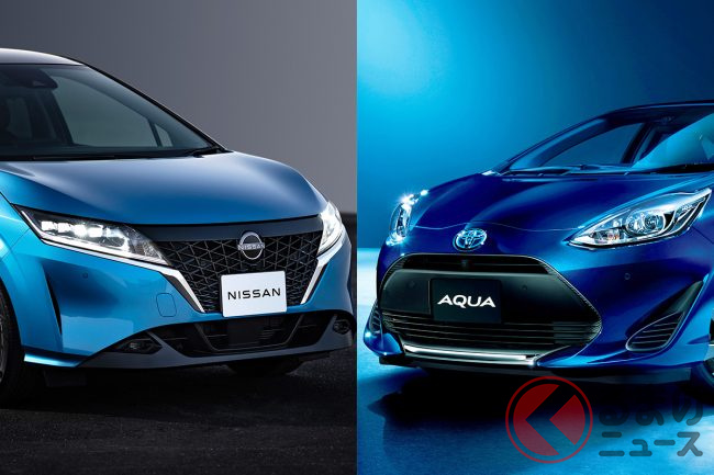 2020年12月に3代目へとフルモデルチェンジした日産「ノート」は、それまでのガソリン車を廃止して、ハイブリッド専用車となりました。同じくトヨタが2011年から発売しているハイブリッド専用車には「アクア」が存在しますが、どのような違いがあるのでしょうか。