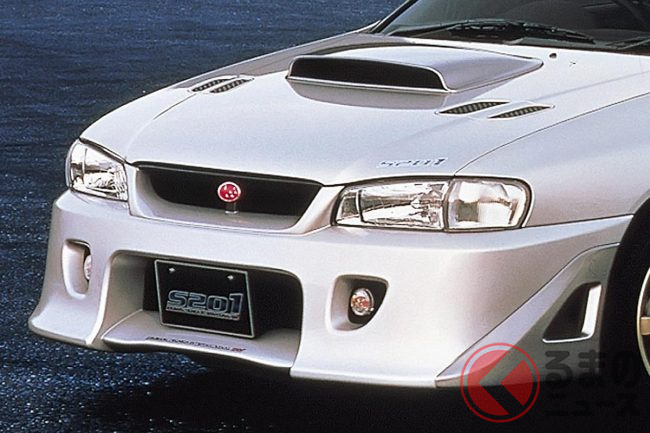 なかでも、初代インプレッサ WRXをベースに2000年に発売されたコンプリートカー「インプレッサ S201 STiバージョン」(以下、S201)は、かなり斬新なボディのモデファイが注目された1台です。