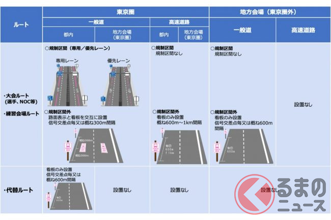 警察庁では、東京2020大会の交通対策として、選手や関係者が乗る大会関係車両の輸送をスムーズにおこなうための2種類の規制を7月から9月までの期間限定で施行することを発表しました。