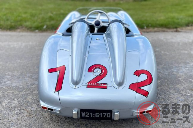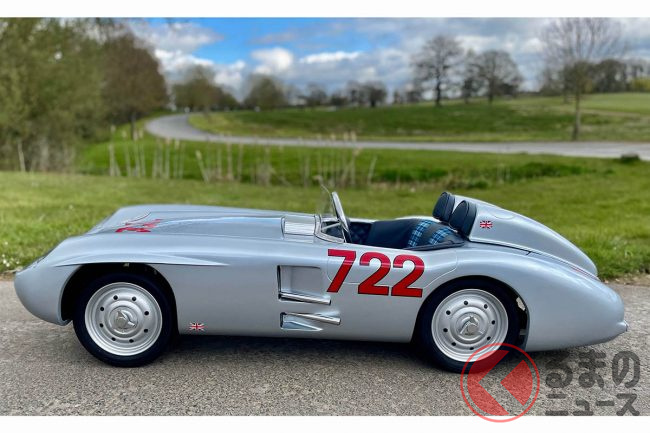オンライン限定オークション「OPEN ROADS, MAY」に、RMサザビーズ英国本社から出品されたのは、1955年に開催された「ミッレ・ミリア」にて、故スターリング・モス卿/デニス・ジェンキンソン組が総合優勝を果たした、メルセデス・ベンツ「300SLR」を、1/2スケールで復刻した魅力的なチルドレンズ・カーであった。