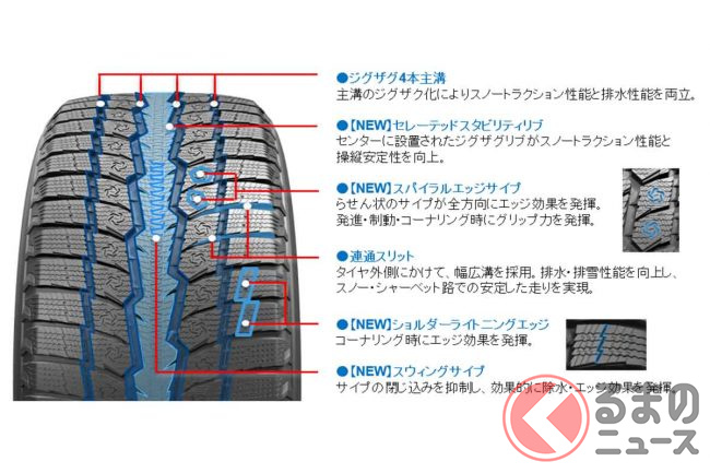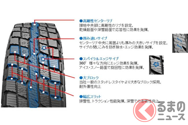 そんな昨今の気候の特徴をふまえ、スタッドレスタイヤにはこのような不安定な路面状況に対応できる性能が求められているといいます。