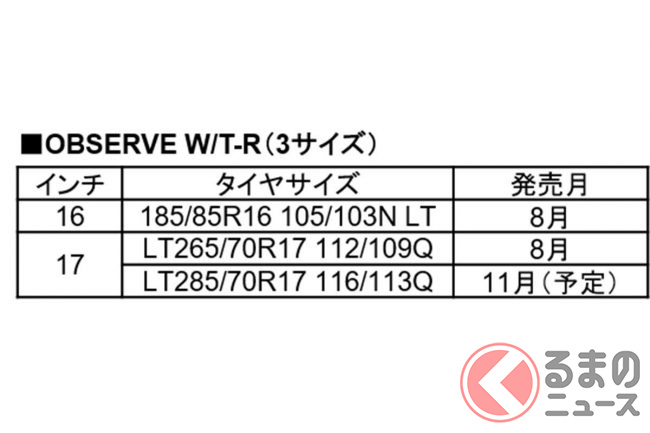 TOYO TIREは2021年7月19日、SUV用の新スタッドレスタイヤ「OBSERVE(オブザーブ)GSi−6」を2021年8月より国内で順次発売します。合わせて、「オブザーブW/T-R」のサイズラインナップを拡大します。