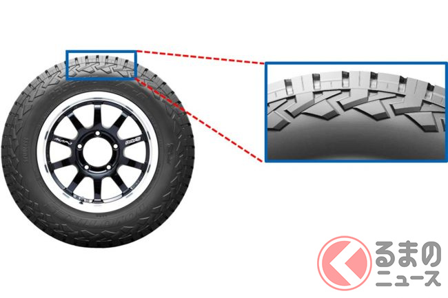 また、荒れた雪道や深雪路などでの走破性を追求したスタッドレスタイヤ、オブザーブW/T-Rも国内で本格販売を開始します。オブザーブW/T-Rは、深雪路面でのトラクション性で効果を得るために、タイヤ側面にオフロード向けタイヤなどで使われている大型のサイドブロックを、TOYO TIREのスタッドレスタイヤとしては初めて採用しています。