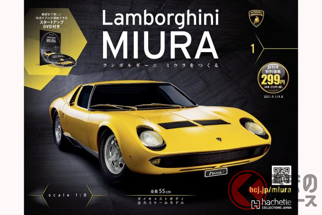 アシェット・コレクションズ・ジャパン株式会社は2021年8月11日、毎号付属するパーツを組み立てると、ランボルギーニ「ミウラ P400S」の1/8スケール(全長55cm)モデルが完成する『ランボルギーニ ミウラをつくる』を創刊する。