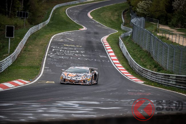 正式なデビュー半年前の2016年秋に、ランボルギーニとともにGTレースで活躍するマルコ・マペッリ選手のドライブで、6分52秒01という量産スーパーカーとしては素晴らしいタイムを樹立した。