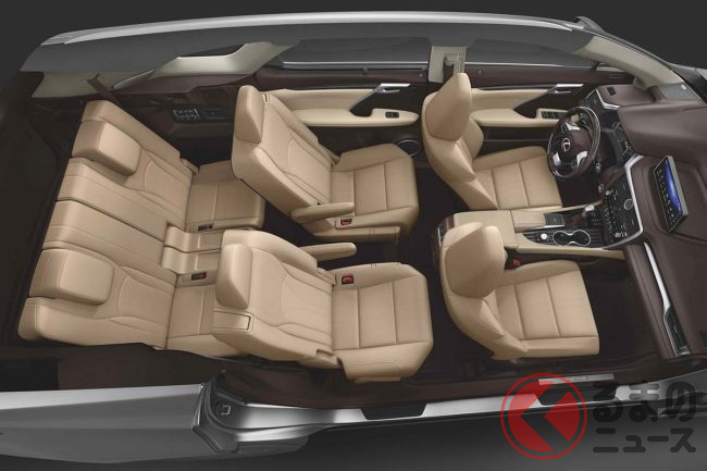 RX Lは、通常のRXの全長を伸ばしたロングバージョンで、3列シート7人乗りの仕様です。