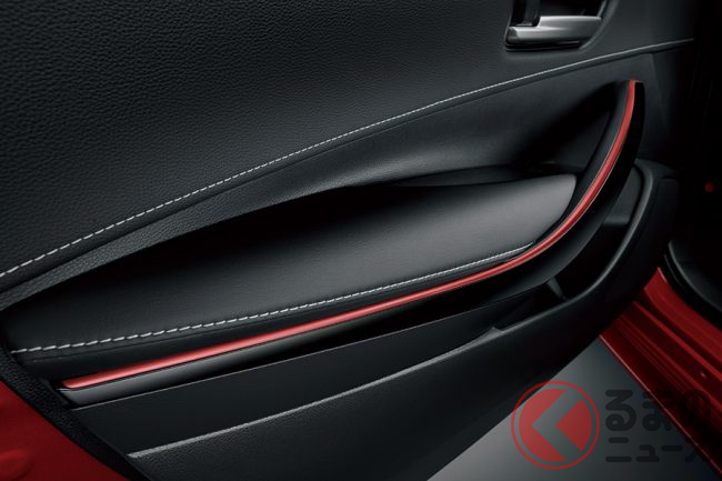 さらに、インストルメントパネルオーナメントやセンタークラスターなどにはレッド加飾、センターコンソールやドアアームレストにはグレーのステッチを施しています。