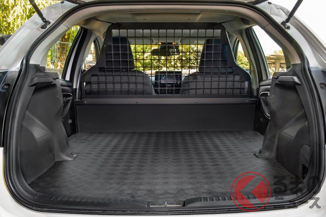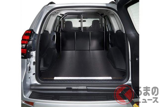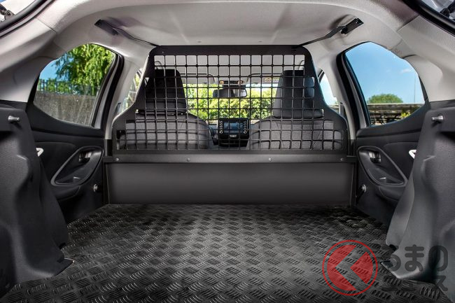 また、フロントシートと荷室の間には、荷崩れしても安全な格子状のパーテーションを設置。荷室はフラットな床面を採用するなど、商用車としての実用性も考慮されています。