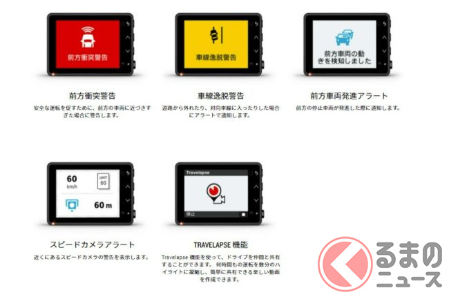先代モデル同様、前方車両発進、速度取締機、前方衝突、車線逸脱などを検知し、音声で知らせる走行支援機能も搭載。「OKガーミン」をウェイクワードとする音声による操作もでき、ひとりの運転時でも簡単に録画することが可能です。