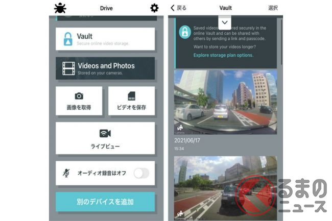 映像を記録しておく媒体には、マイクロSDや従来品から採用されているWi-Fi経由による映像転送機能に加え、新たな手法としてプライバシー保護を施したガーミンクラウドへの自動アップロード機能「Garmin Vault」を追加しています。