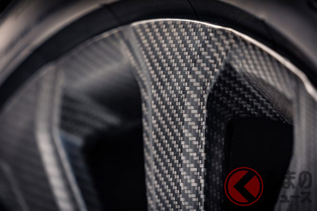 アルミホイールに亀裂が入ったり、粉々になったりするような激しい衝撃を受けると、タイヤは爆発をするように崩壊するが、カーボンファイバー製のリムは、インテリジェントな繊維の織り方により、ゆっくりとタイヤを収縮させることができ、クルマを制御しながら安全に停止させることが可能となるいうのだ。