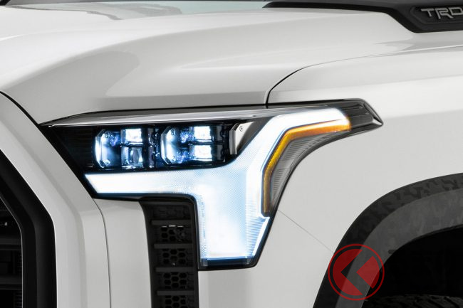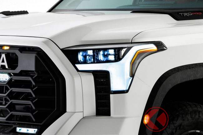 トヨタの北米法人は新型タンドラのティザー画像を順次公開しており、最初の公開となった2021年5月18日には、ヘッドライトが点灯したフロントフェイスの画像を発表。