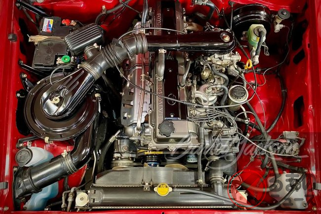 外観はリペイントされていますが新車当時の色に戻され、グリルやバンパー、オーバーフェンダーもガンメタリック塗装が施されて、古さはまったく感じられません。