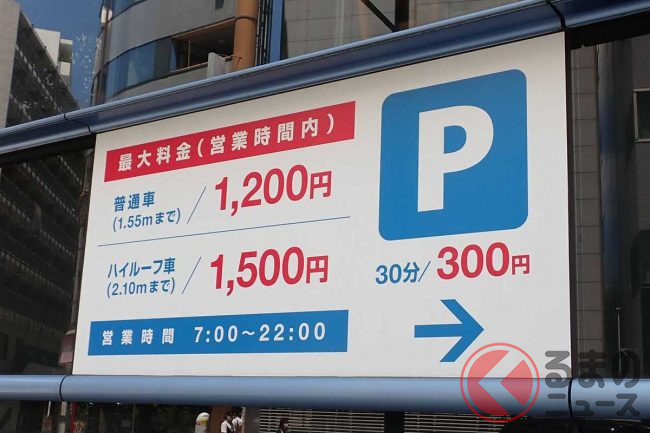 まず「車高1.55m以下」のクルマのみが入庫できる駐車場では、上限料金を低く抑える動きが目立っています。とくに過当競争となっている地域のやや目立たない場所にある駐車場では、12時間や24時間の上限が「1200円」など、破格の安さになっているところもあります。