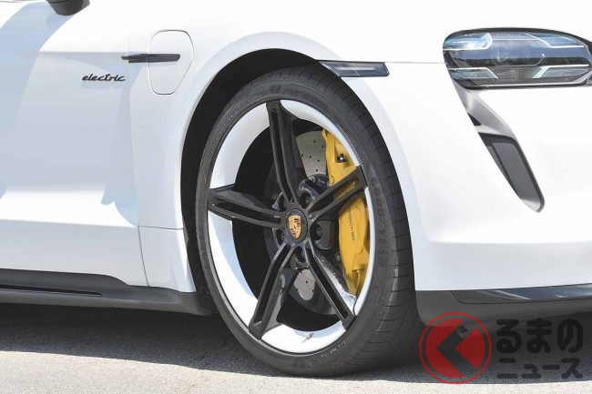 強い回生ブレーキも効くBEVなのだから、巨大なキャリパーを持つポルシェ・セラミック・コンポジット・ブレーキ(PCCB)という贅沢なブレーキシステムを備えなくても良いのではないかと乗る前は思いました。