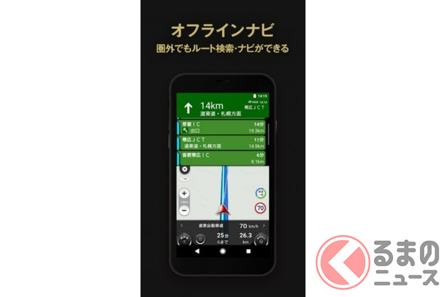 カーナビタイムは、地図データをあらかじめモバイル端末にダウンロードしておくことで、電波が圏外のエリアでも使える本格派のカーナビアプリです。