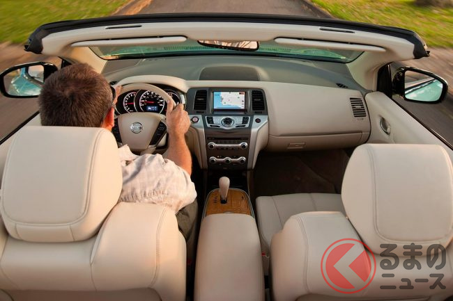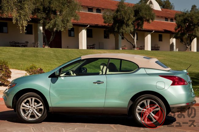 2011年に追加ラインナップされたムラーノ クロスカブリオレは、ルーフ部分を撤去して油圧で開閉するソフトトップを装着。